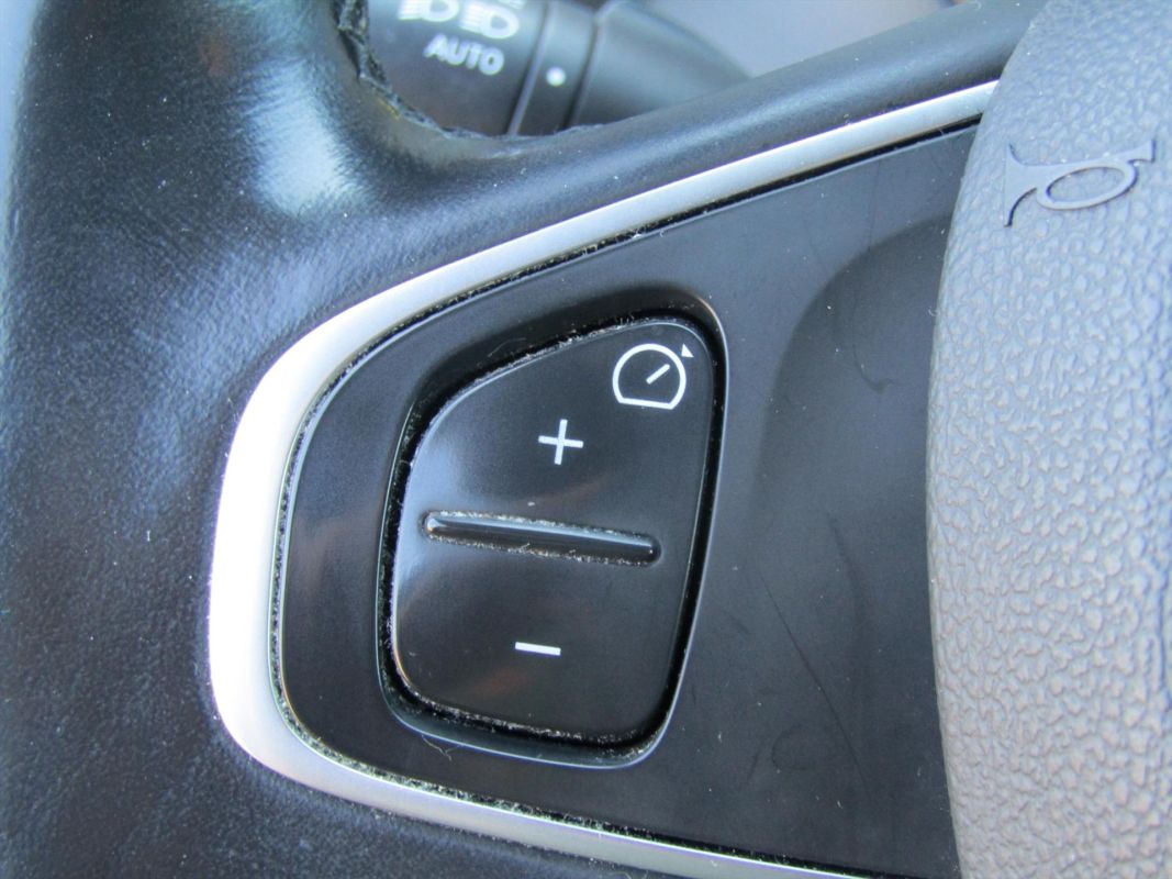 - Met leder bekleed 3-spaaks stuurwiel met bediening cruise control en snelheidsbegrenzer in kleur Noir