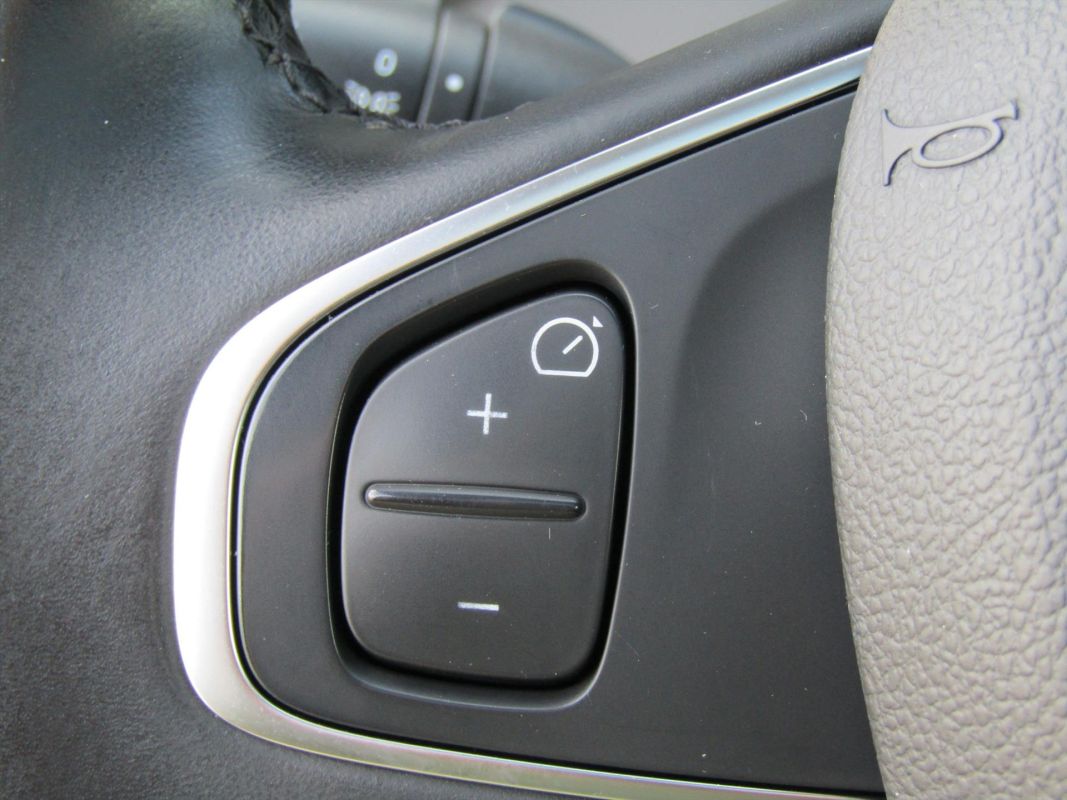 - Met leder bekleed 3-spaaks stuurwiel met bediening cruise control en snelheidsbegrenzer in kleur Noir